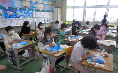 お隣の1年2組も「あきのおもちゃランド」のオープン向けて準備中!
