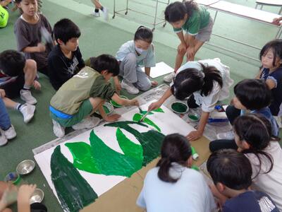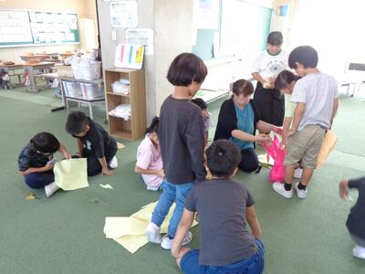 おうちから持ってきた材料や学校にある材料を使って、