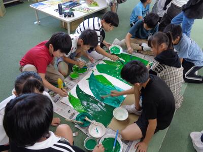 1年2組の図工は「こすりだしから生まれたよ」