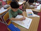 1年1組は遠足でみつけたことをカードにまとめ中