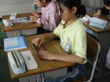 問題に合わせて、おはじきを並べながら、答えを出しています。