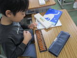 4年1組の算数はそろばん。