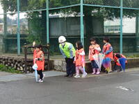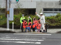 交通安全母の会や交通安全指導員の方にもご協力いただき、外に出発!