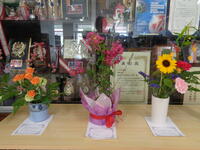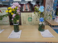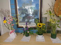 文化クラブの子どもたちが生けたフラワーアレンジが