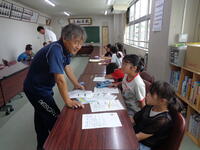 今日は2年生が「夏休み!チャレンジ大作戦」のカードを担任の先生に見てもらい、