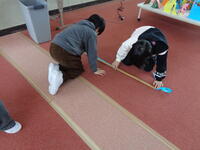 お友達と協力してテープをまっすぐ伸ばしてから測るのがポイントです。
