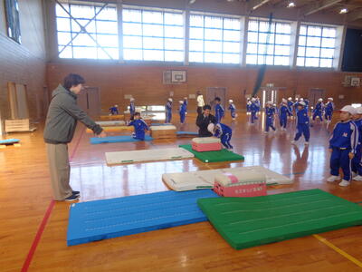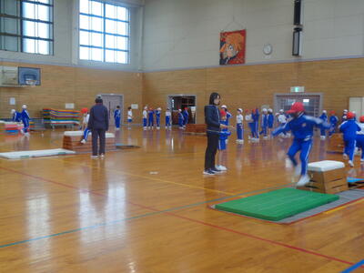 跳び箱をつなげて、とびのりやとびおり、またぎのりやまたぎおり、