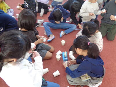 国語の教科書に出てくる「紙コップけん玉作り」。