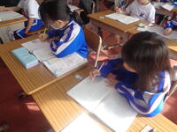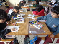 お友達と一緒に、算数のプリントや国語のお話作りを静かに取り組んでいます。