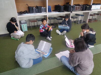 5年1組が「キリマンジャロ」という曲をグループ練習中。