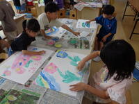 汚れも気にせず作品作りをめいっぱい楽しんだ子どもたち。