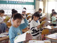 2年1組の国語の授業で「たんぽぽのちえ」を音読していました。