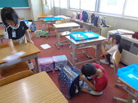 各クラスで机の中を整理したり、