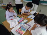 漢和辞典や教科書などを使って、自分で選んだ部首を調べました。