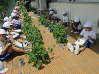 それぞれが選んで植えた野菜苗も大きくなって実がなりはじめました。