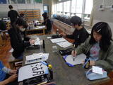 6年2組の書写は、教科担任の北澤先生。