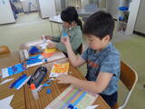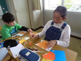 折り紙をちぎって、貼り付けて、「こいのぼり」を作ります🎵