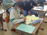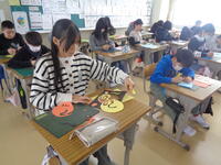 5年1組は家庭科でランチクロス(お弁当つつみ)を制作中🧵