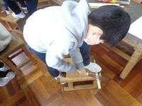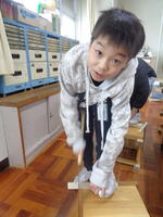今日は木の板をノコギリで切って、まずは部品を作りから。