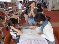 1組は長岡先生と田中先生に「はなのみち」の暗唱を聞いてもらい、