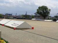 運動会に向けてテントが準備されたグラウンドで、