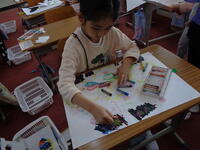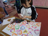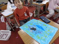 クレヨンでぼかしたり、ひっかいたり、こすったり、楽しい作品になりました。