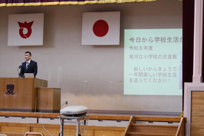 校長先生からのお話と児童代表の歓迎のことば。