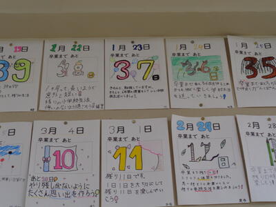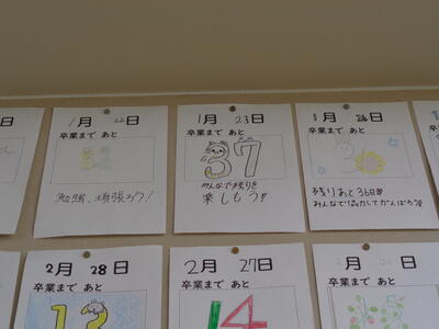 卒業までのカウントダウンカレンダーが貼ってあります。