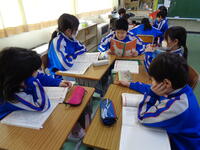 「ウナギの謎をおって」を読んだ感想を、グループで発表し合っていました。