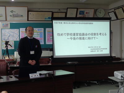 その後、「寒河江小学校コミュニティースクール5年目に向けて」をテーマに、