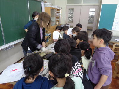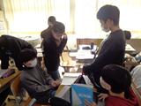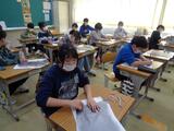 紙版画の刷りを始める前に先生の説明と刷り方をしっかり聞きます。