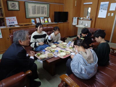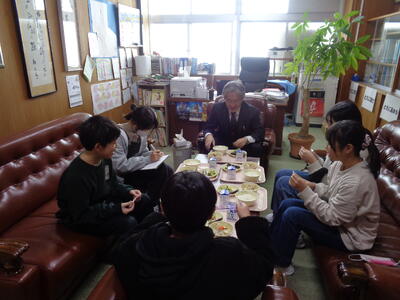 【6年生】校長先生と一緒に給食 投稿: 管理者 (12:58) カテゴリー: 今日の出来事 きのうから6年生の校長室給食が始まりました。 毎回5人ずつ学年全員が校長先生と一緒に給食を食べながら、お話しをする時間です。 子どもたちにとっても、校長先生とゆっくりお話しできたことは、 卒業しても小学生の思い出のひとつになりそうですね。 Tweet -