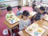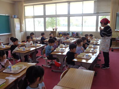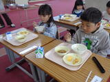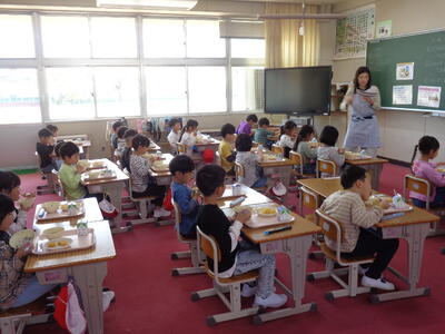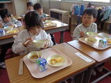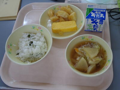 【1年生】給食スタート!! 投稿: 管理者 (12:36) カテゴリー: 今日の給食 1年生は今日から給食がスタート! 給食当番さんは給食着を身に着け、 配膳室に給食を取りにいきます。 今日は先生たちとボランティアさんが盛り付け、 順番に取りにいってトレーで運びます。 みんなで「いただきます!」 子どもたちニコニコ😊 「うまっ!」って言いながら食べていました。 ~~今日の献立~~ ★わかめごはん ★牛乳 ★厚焼きたまご ★みそポテト ★具だくさん汁 Tweet -