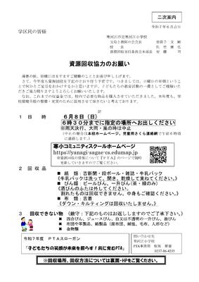 資源回収の御礼及び収益金の報告